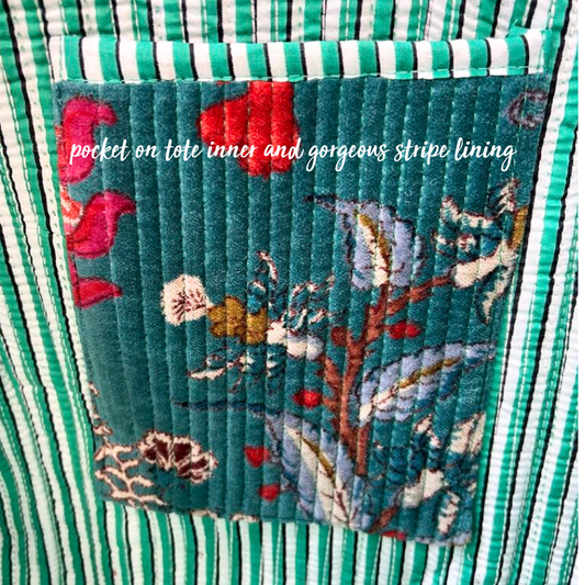 Mandalay Velvet Floral Tote Bag - Teal