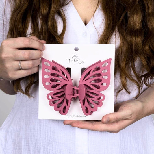 Claw Clip - Jumbo Double Butterfly - Pink