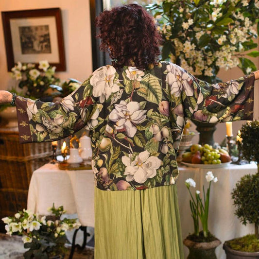 Fleur De Lune Cropped Kimono Jacket with Florals & Bees