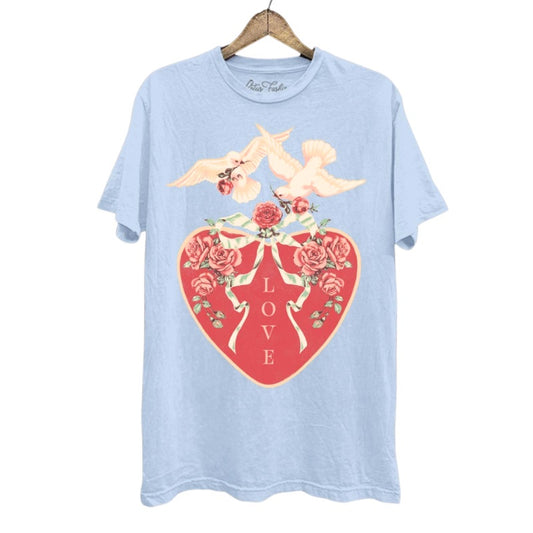 Lovey-Dovey Boyfriend Tee in Baby Blue Mineral Wash