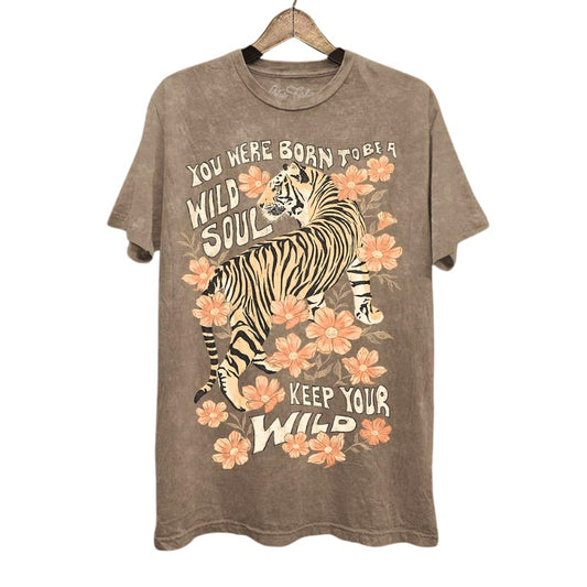 Wild Soul Tiger Tee - Mineral Wash in Mocha