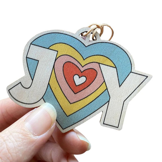 Joy heart shaped hanging wooden decoration keepsake
