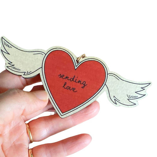 Winged heart Sending love wooden hanging decoration keepsake
