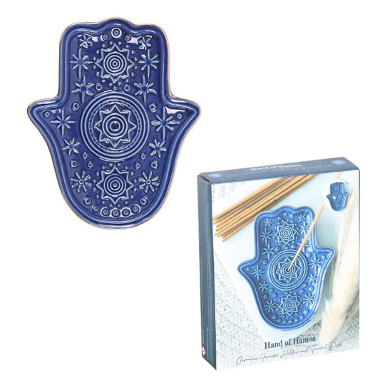 Dark Blue Hand of Hamsa Incense Holder and Trinket Dish