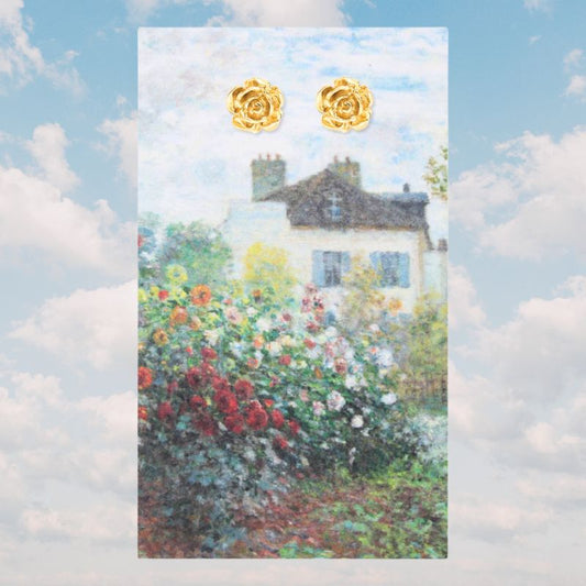 Garden Dahlias Fine Art Gold Flower Earrings