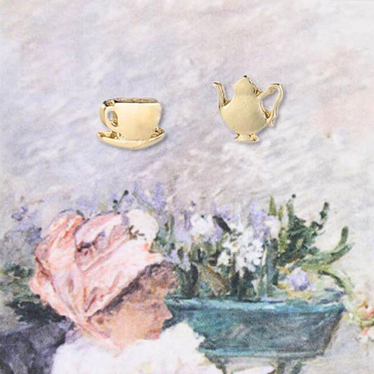 Cup of Tea Fine Art Gold Post Earrings