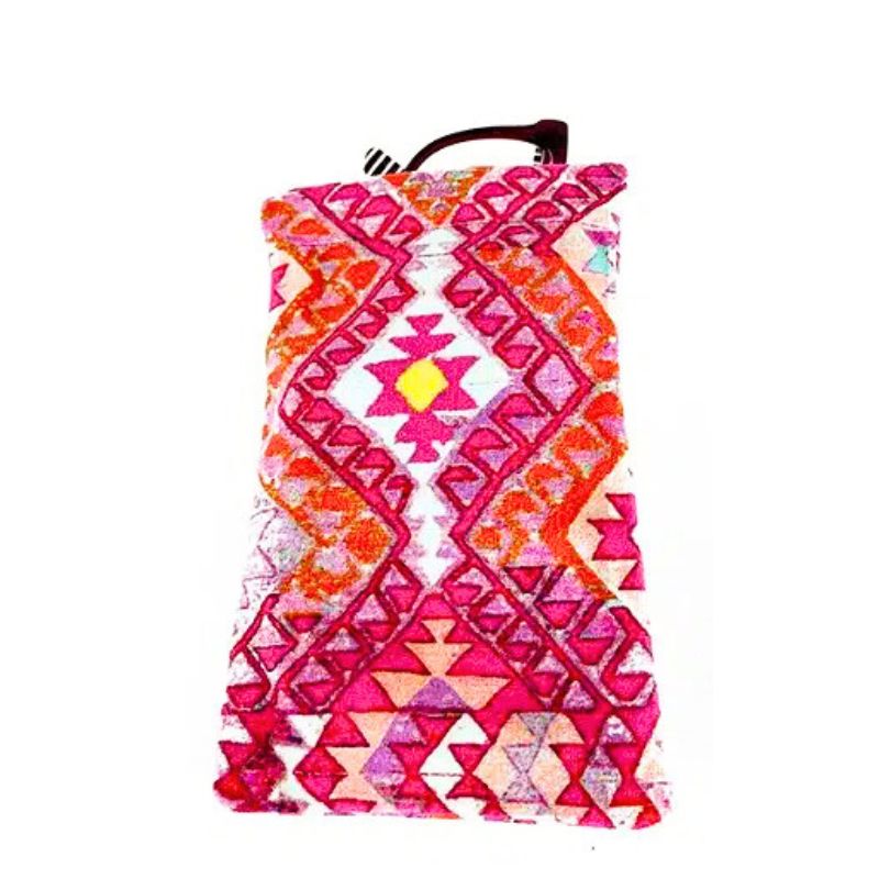 Bold colours on velvet polyester external fabric with a soft satin lining. Metal snap open for security.