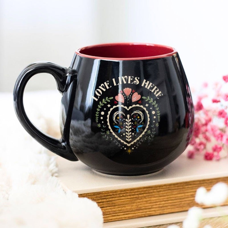 Love Lives Here Folk Heart Mug